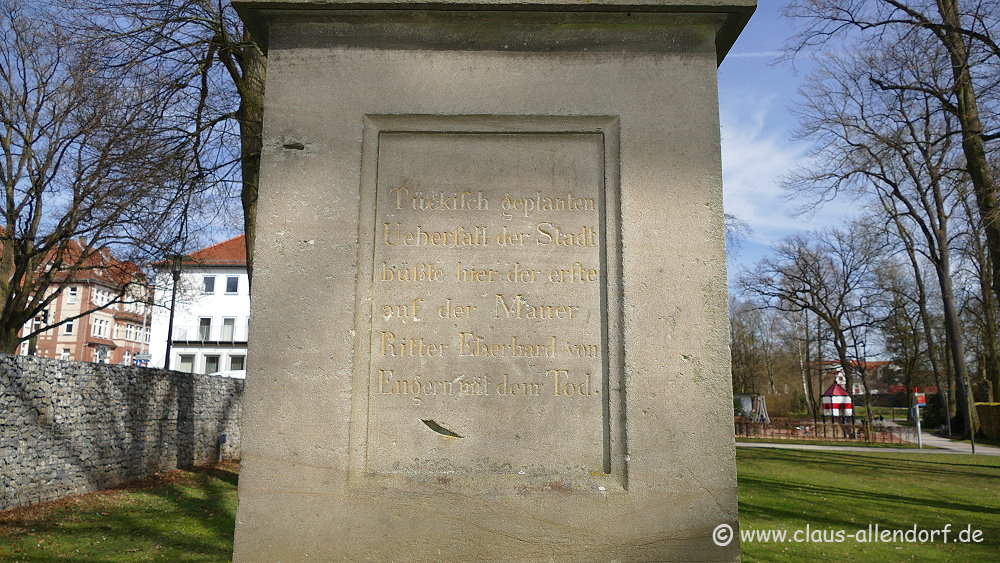 (darunter ein Sohn des Abtes), auf den Markt geschleift und summarischem Schnellgericht enthauptet. Als der Heerhaufen der Ritter nach Mitternacht vor verschlossene Tore kam und Eberhard von Engern prahlend zum Sturm auf die