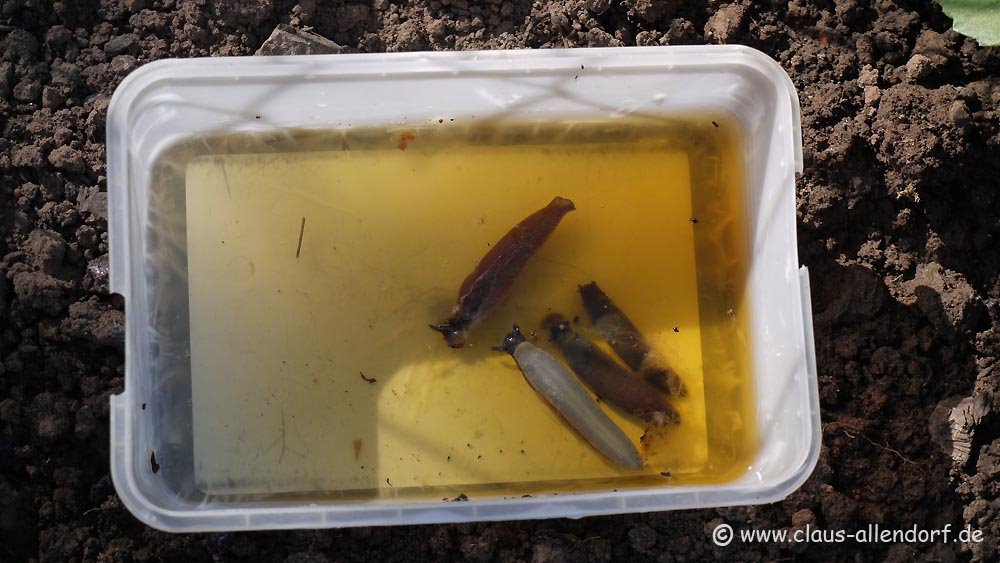Schnecken werden vom Biergeruch angezogen. Als Falle wird ein Becher mit Bier gefüllt und halb in den Boden eingegraben. Weizenbier soll bei den Kriechen besonders beliebt sein.